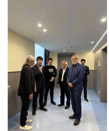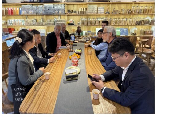 卡立沙末(右二)和一般勞工身體健康檢查OBOR協會一行人與李睿(左二)、楊旸(右一)及應峻(右四)停止深刻切磋。